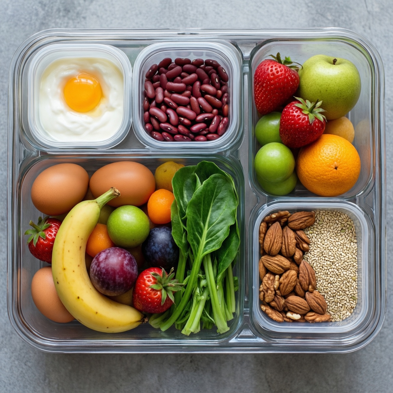 Чтобы перекусывать быстро и без вреда, держите под рукой "конструктор": источник белка (йогурт/творог/яйцо/бобовые), клетчатку (овощи/фрукты), полезные жиры (орехи/семечки) и удобную упаковку. Дома это закрывает холодильник и морозилка, на работе - сумка и ящик стола. Главное - порция, состав и срок годности.