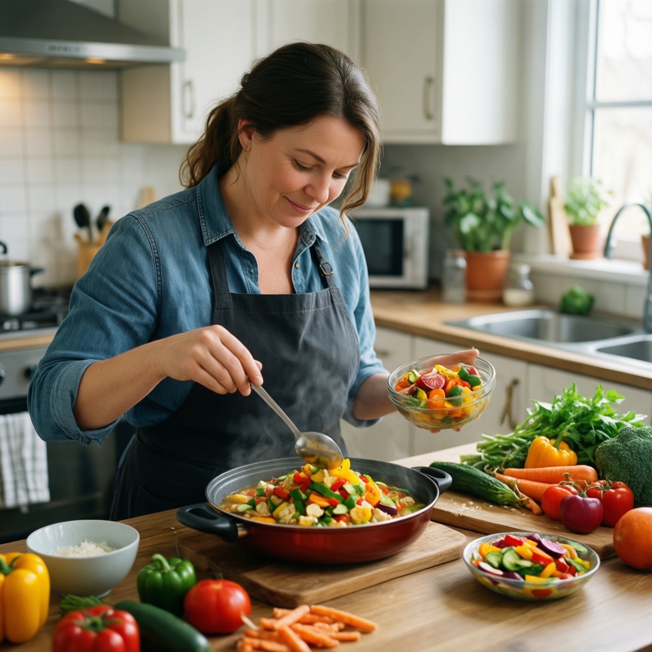 Готовить полезнее без сложных рецептов проще всего через замены: меняйте один ингредиент в привычном блюде на более удачный по составу, добавляйте объём овощами и выбирайте щадящие способы готовки. Такой подход поддерживает здоровое питание, помогает держать вкус знакомым и снижает риск срывов, потому что не требует радикальных запретов.